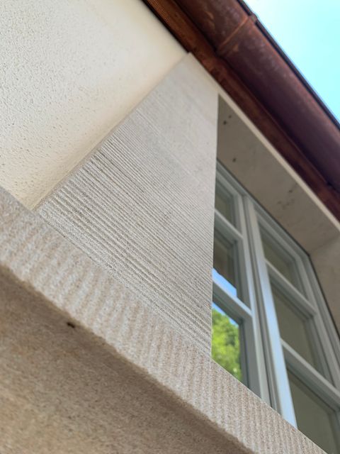 Fenster- und Türumrahmungen aus Sandstein verleihen Gebäuden ein klassisches und elegantes Erscheinungsbild.